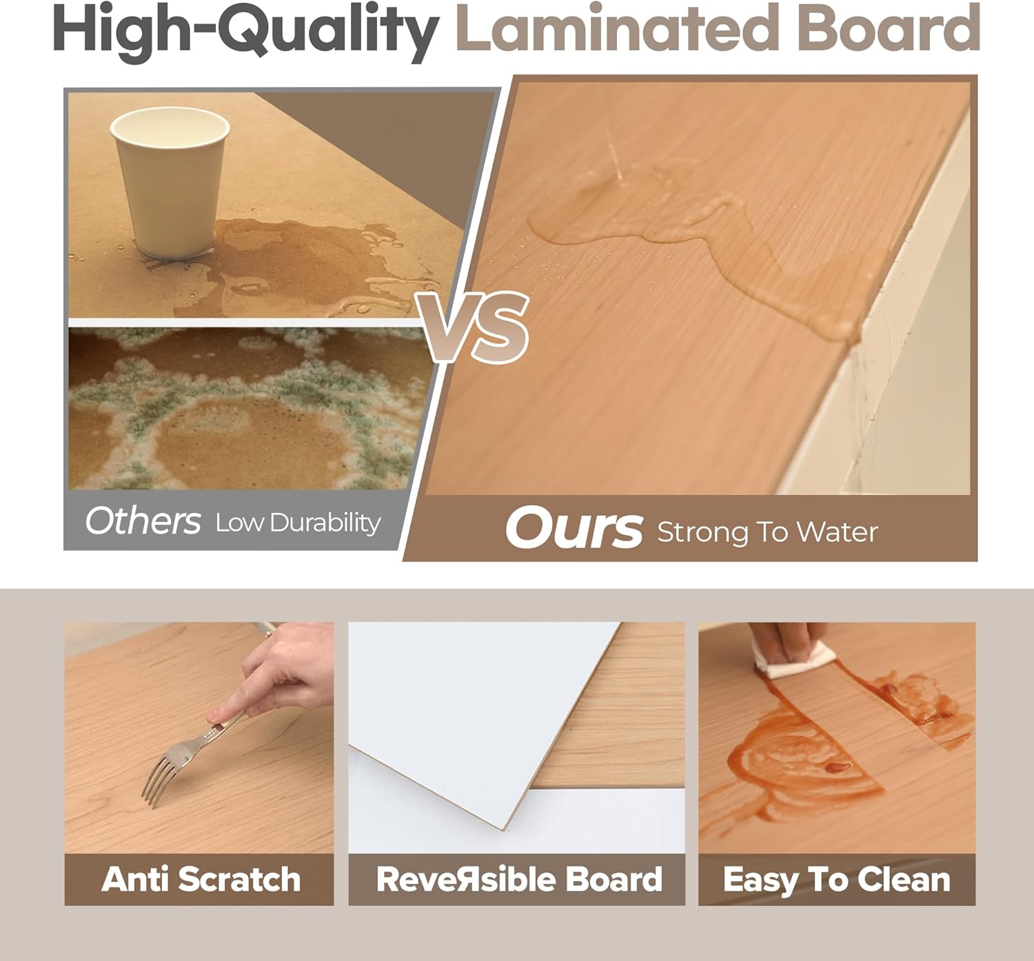 - The reversible sides make it easy to change the look of your space without having to buy new furniture. One side is classic light-wood and the other is bright white color.