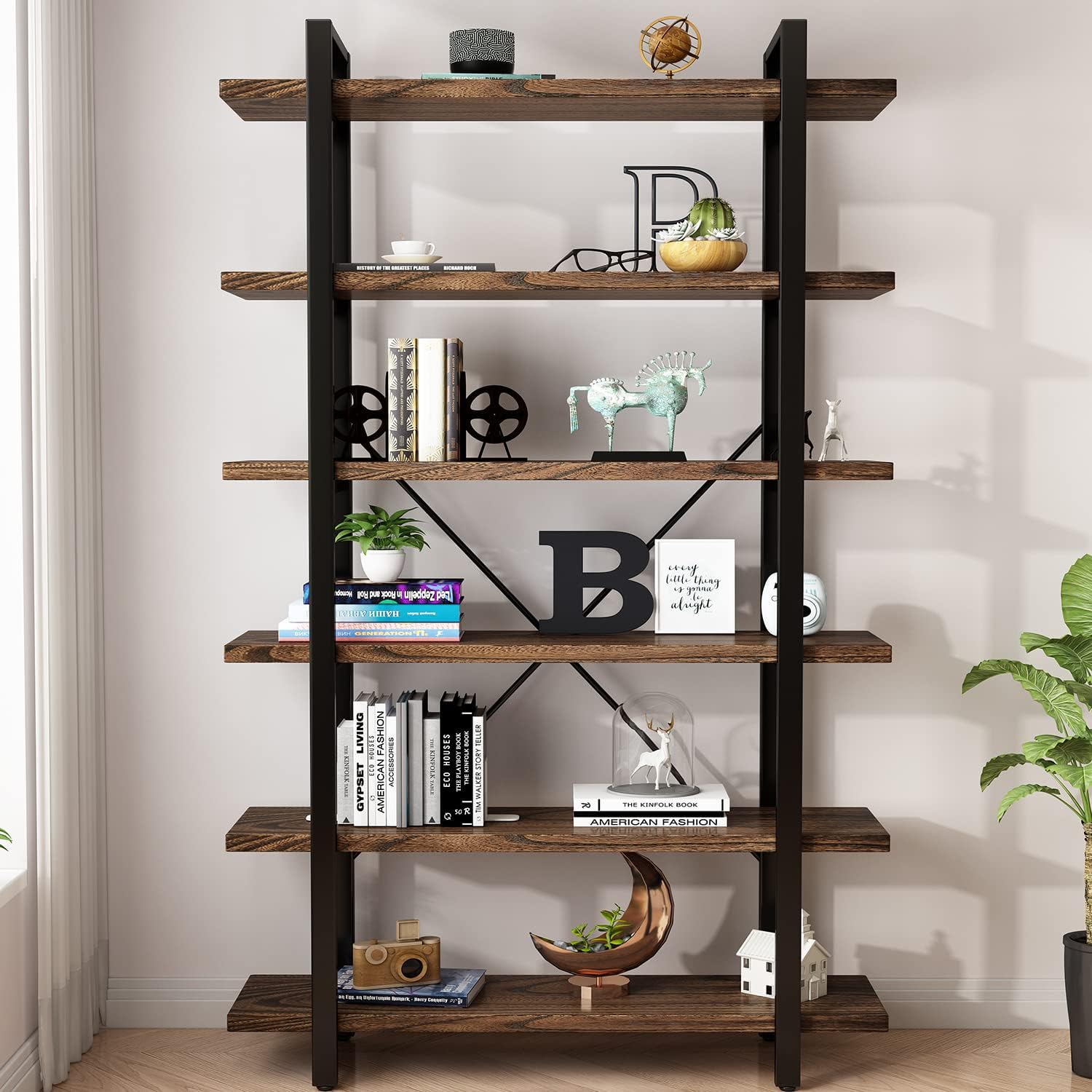 5-Tier Industrial Style Bookcase and Book Shelves,Rustic Wood