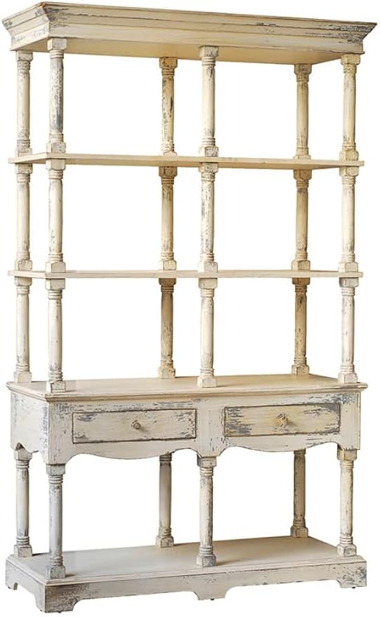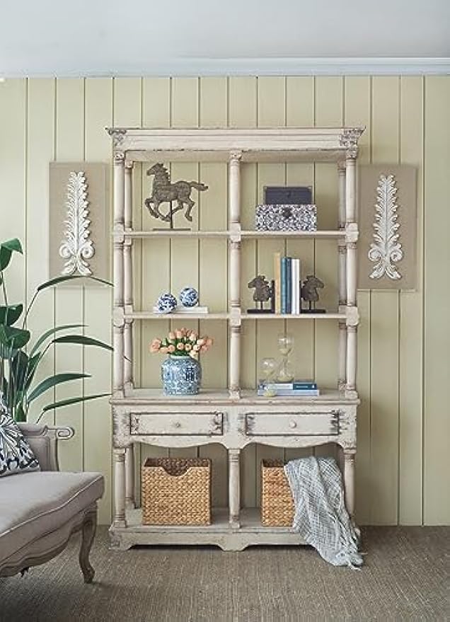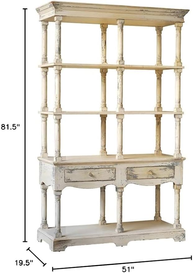 Wood Display Storage Shelf Bookcase, Distressed Finish, French Country Style, Versatile for Living Room or Office, Antique